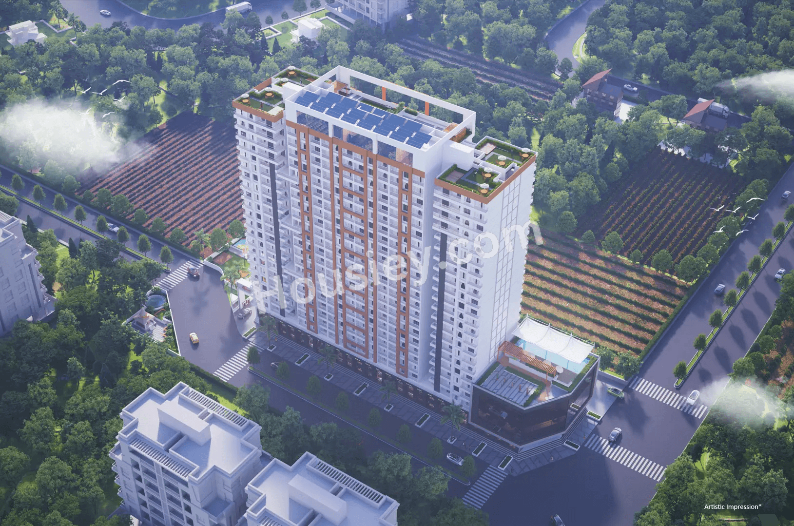 Video Door Phone, Digital Lock, Vitrified Tiles, Branded Fittings, Granite Kitchen Platform with S.S. Sink, 5 Tier Security, Anti-Skid Tiles, CP Fittings, MS Grill, SS Railings, Solar Heated Water System, EV Charging & many more.