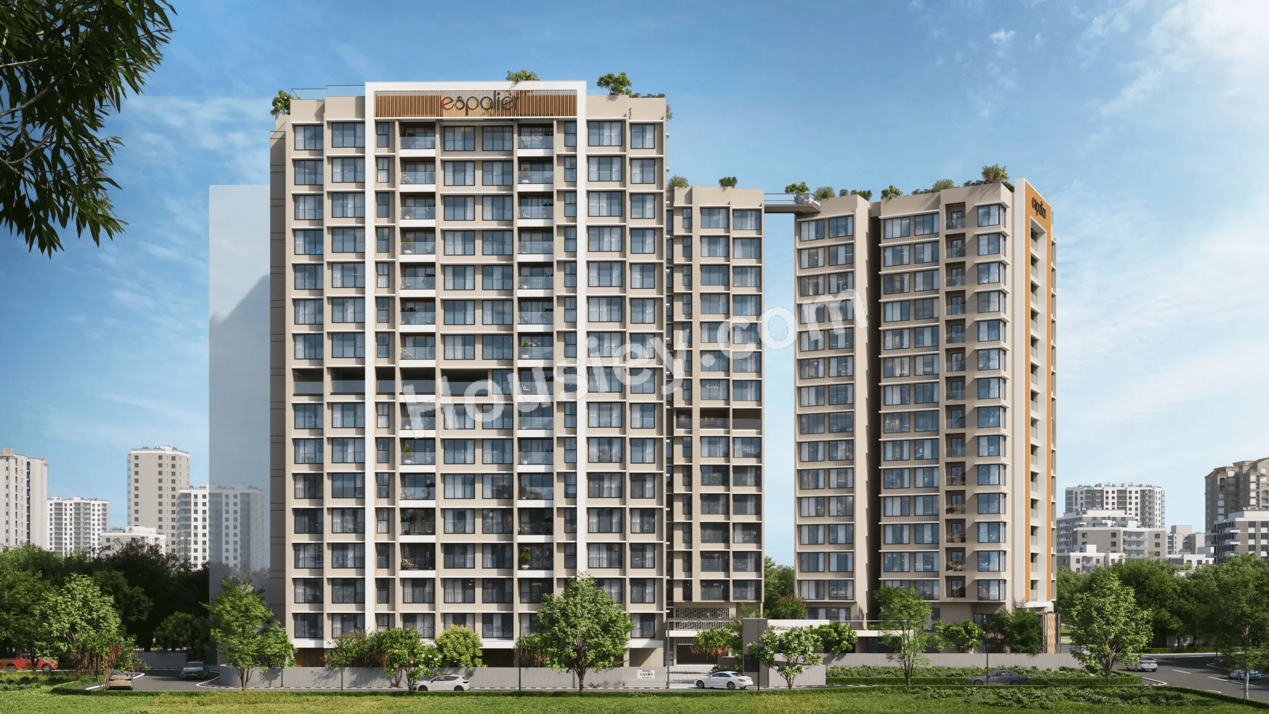 Romell Espalier Project will be constructed on 1 Acre of land parcel, 4 towers with 3B+G+15 floors having 2 BHK, 3 BHK, 3.5 BHK premium residences .